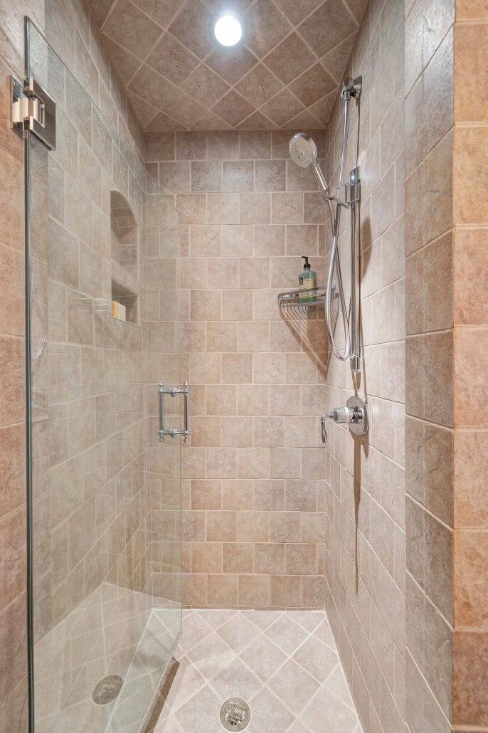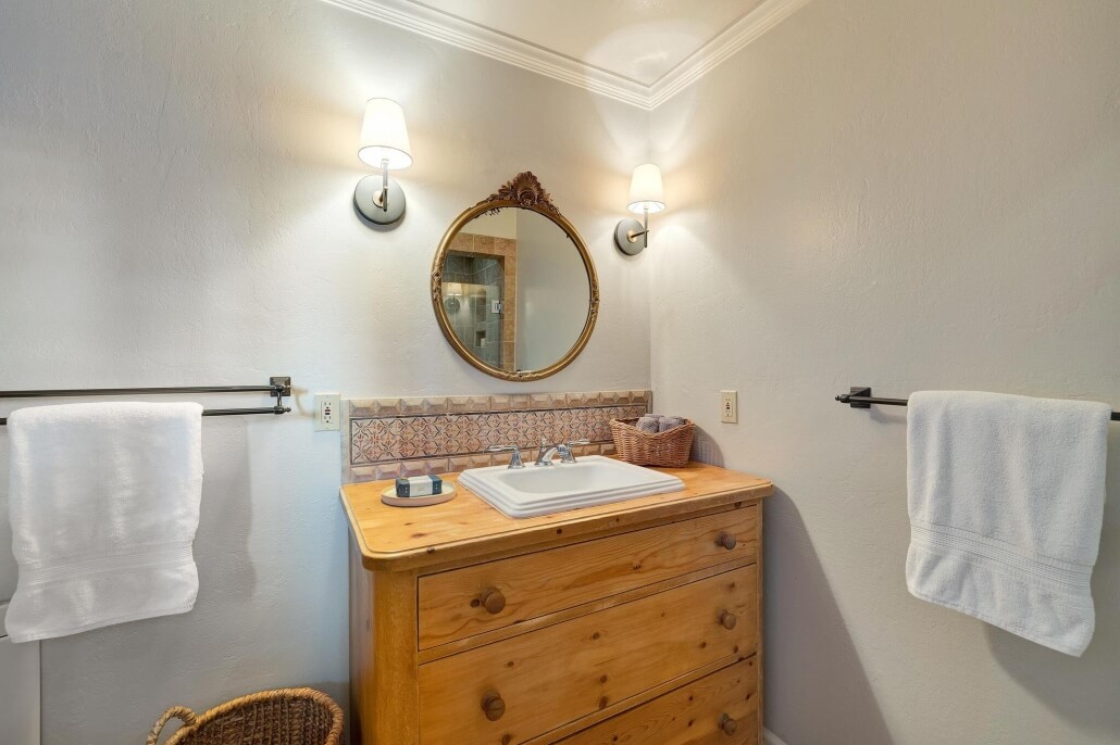 There are two additional bedrooms in the main house sharing their own hallway and a remodeled full bathroom. The bathroom features heated floors, Toto toilet, custom tilework and the original cast-iron tub.
