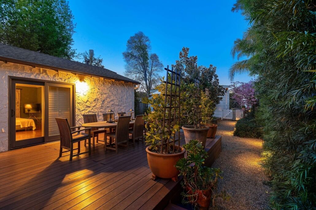 This home features true “California Living” with multiple outdoor “rooms” connected by inviting gravel pathways with landscape lighting and surrounded by lush, thoughtfully-designed gardens creating additional privacy and a lovely ambiance. Every corner you turn reveals another magical space. Combined with the spacious front courtyard, these areas extend the property’s living space and enjoyment well beyond the interior walls. Multiple fruit trees are planted throughout the property and there is ample space for vegetable gardening.