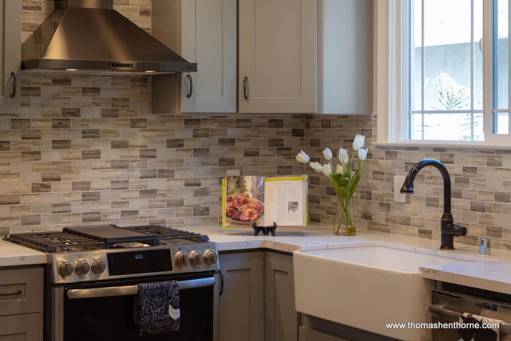 The spacious eat-in kitchen is ideal for entertaining and family gatherings and features stainless appliances, quartz counters, new cabinetry and a custom tile backsplash.