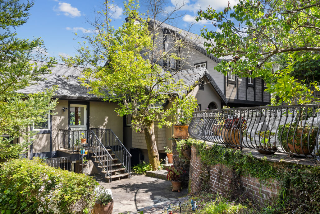 16 Sunny Drive, San Anselmo, CA – Tucked away on a quiet cul-de-sac in the coveted Sequoia Park neighborhood of San Anselmo, 16 Sunny Drive is an enchanting storybook retreat—rich in European architectural detail, lush gardens, and timeless sophistication. Reminiscent of Carmel-by-the-Sea, this 4-bedroom, 3-bathroom residence with a detached studio blends old-world craftsmanship with romantic ambiance and modern-day comfort.