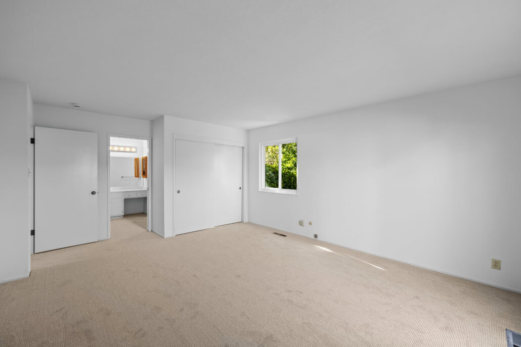The spacious primary suite is quietly positioned and opens directly to the back garden, creating a lovely connection to the outdoors. Two closets provide generous storage, while the en-suite bathroom includes a tub/shower combination and a dedicated makeup vanity area.