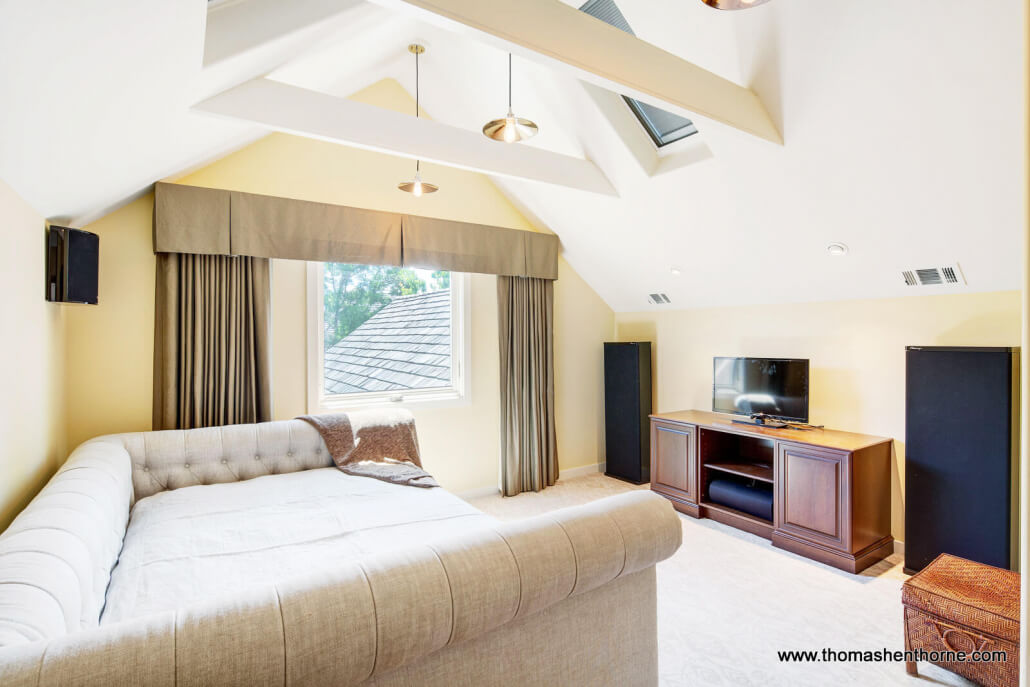 A third bedroom (optional master) with ensuite bathroom is located upstairs and features vaulted ceilings with exposed beams and skylights. There is also a conditioned bonus room (not included in the square footage) ideal for additional storage.