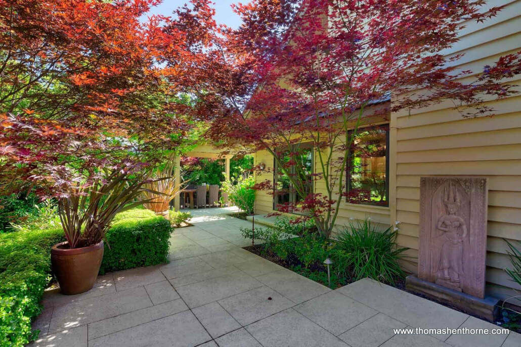 The entire area is beautifully-landscaped, with fragrant star jasmine, colorful Japanese maples, hydrangeas, roses and abutilons. The back garden is accessed through French doors from the main living area, creating an effortless indoor/outdoor flow.