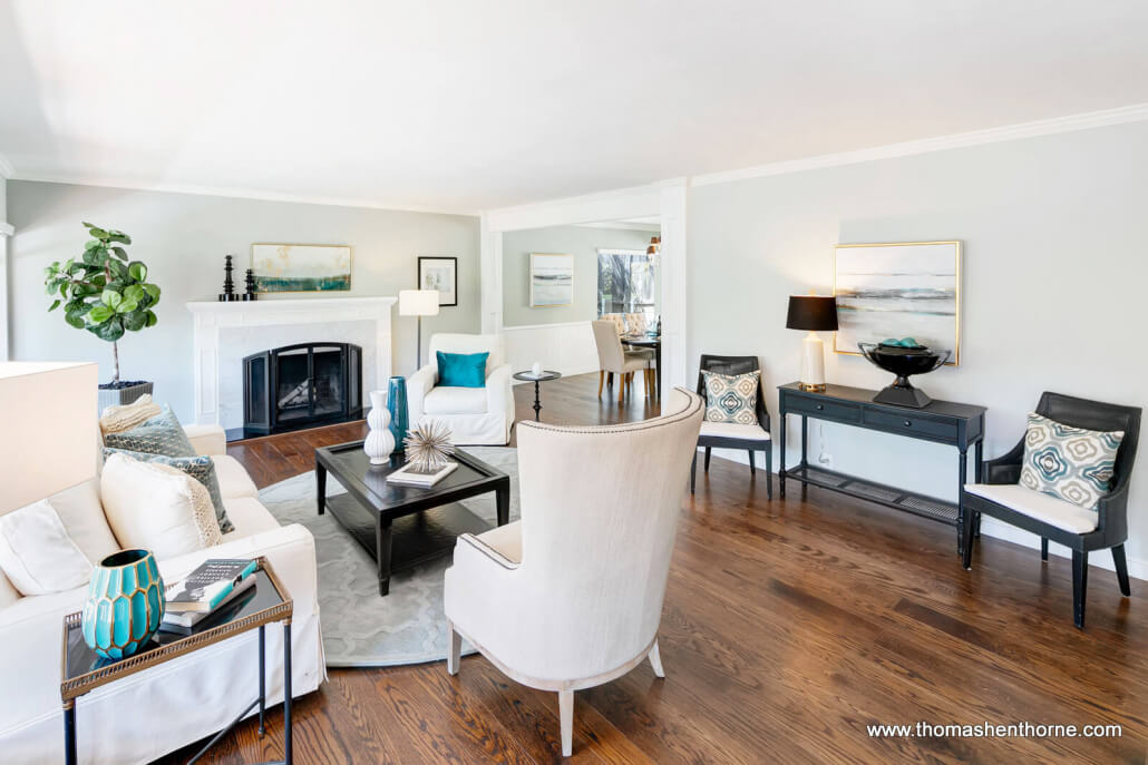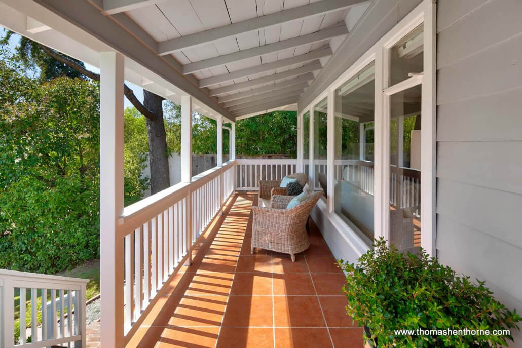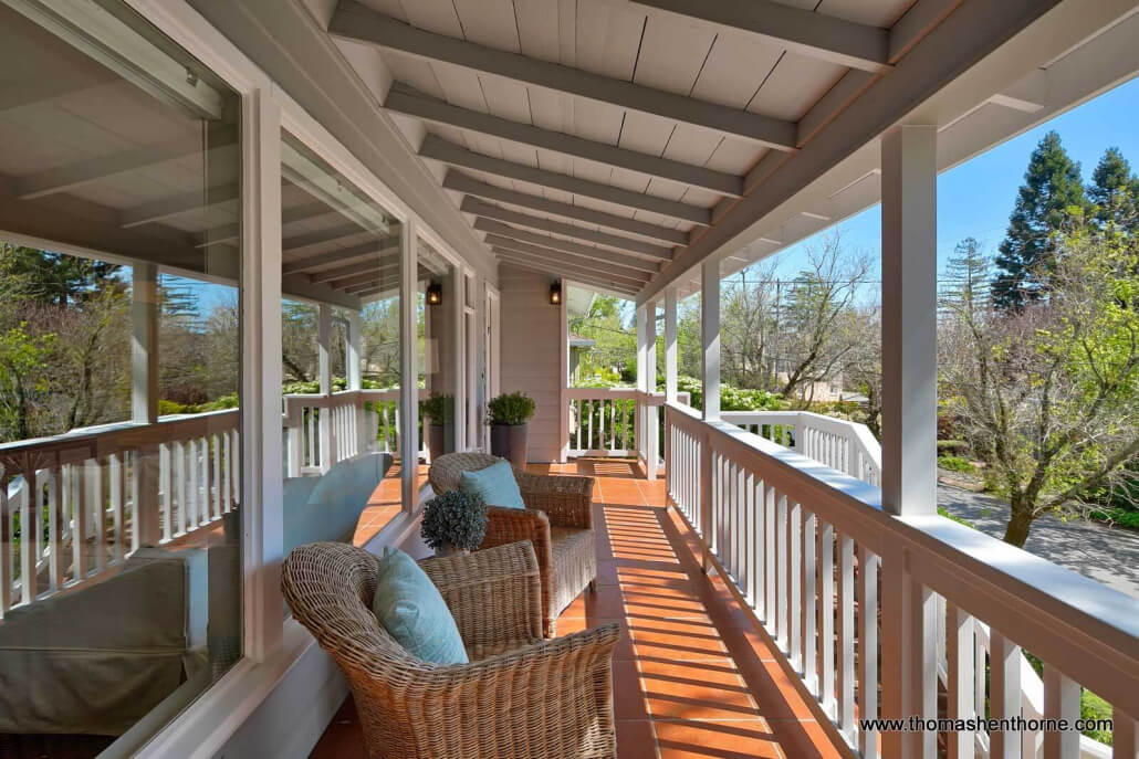 The inviting front porch is the perfect spot to enjoy an evening aperitif with friends or neighbors. The porch is a wonderful extension of the indoor living room.