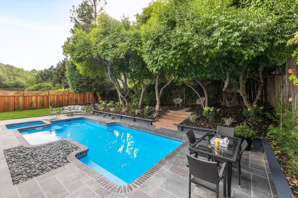 23 Maplewood Drive, San Rafael, California – 23 Maplewood Drive in San Rafael’s coveted Glenwood school district has been completely remodeled in 2023 and re-imagined for today’s modern living. Featuring 4 BR/3BA plus an office, the home offers indoor/outdoor California living at its finest with a large, fenced backyard, a sparkling swimming pool and lawn area. The stunning remodeled kitchen features stainless Miele and Thermador appliances as well as custom cabinets, quartz countertops and handmade tile backsplash. There are two separate family rooms offering ultimate flexibility. The primary suite is a private retreat located on the upper level, complete with spa-like bathroom, walk-in closet, a separate office and a deck overlooking the swimming pool and back gardens.
