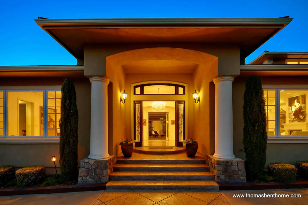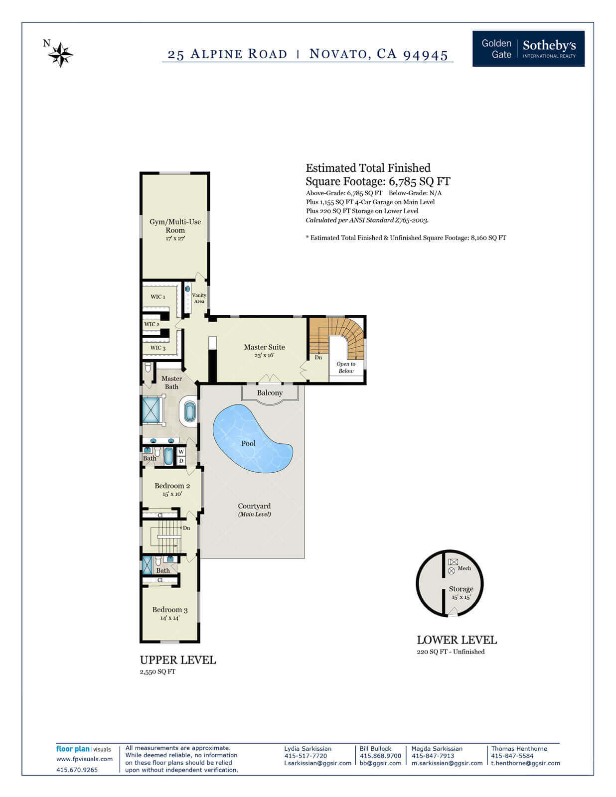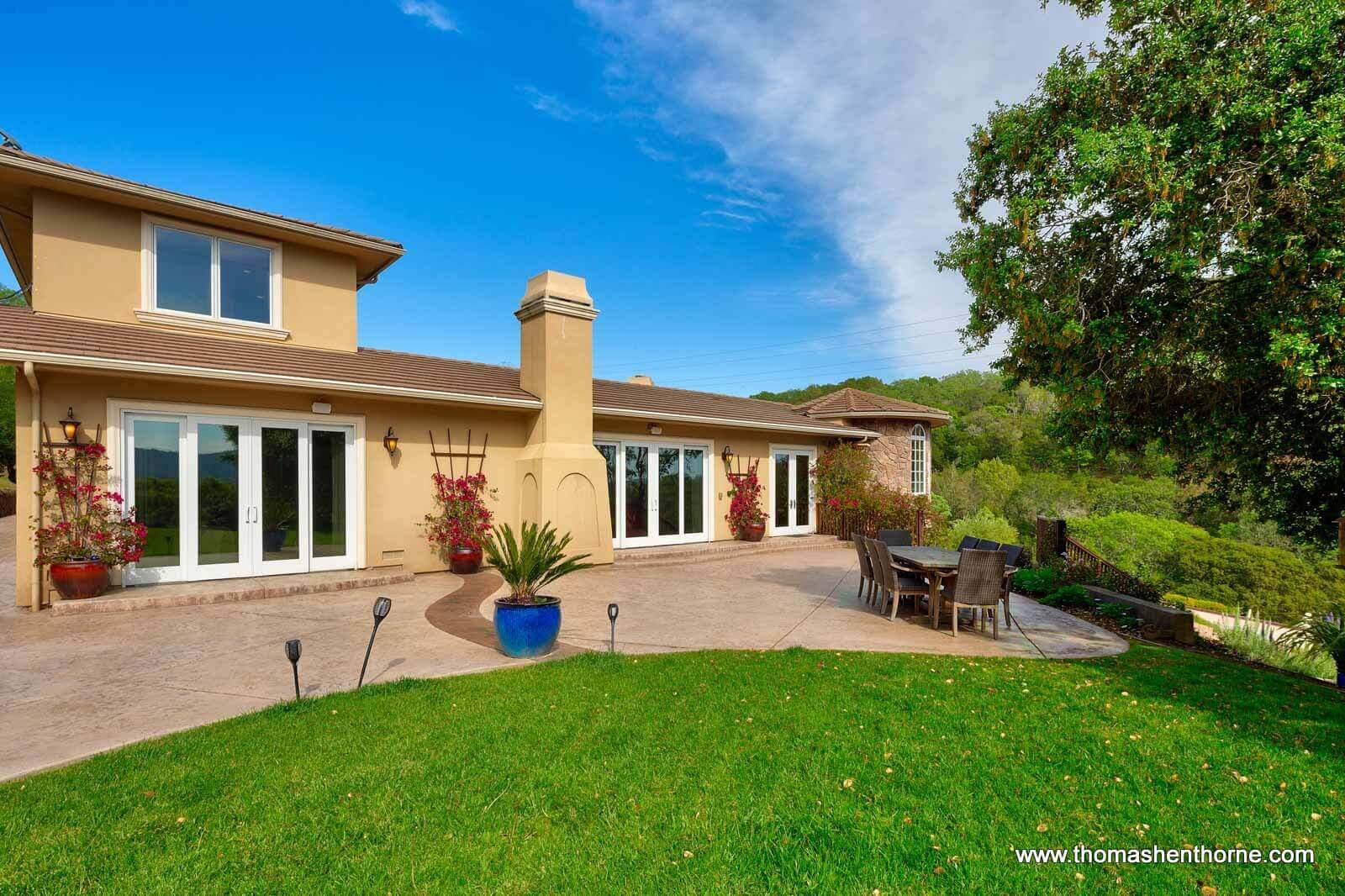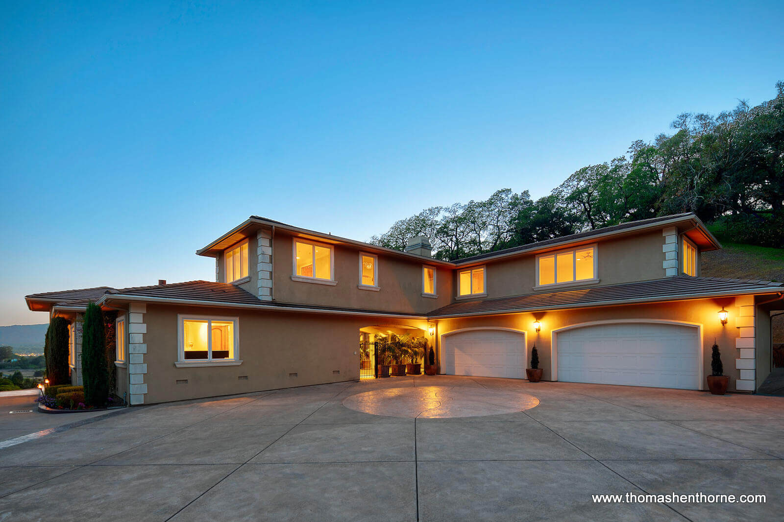 25 Alpine Road, Novato — Welcome to one of Marin County’s grand estates, perched atop a private knoll at the end of prestigious Alpine Road in the exclusive Greenpoint neighborhood. Situated on 5.27 acres with commanding views of the Marin countryside and Mount Tamalpais, this opulent 5 BR / 5.5 BA 6,785 square foot gated estate is adorned with custom architectural details and top-of-the-line premium finishes throughout. Designed for entertaining, the home’s open-concept kitchen and large-scale rooms flow effortlessly out to multiple outdoor living areas including a stunning central courtyard, reminiscent of a boutique resort with its spacious, private patio and inviting pool.