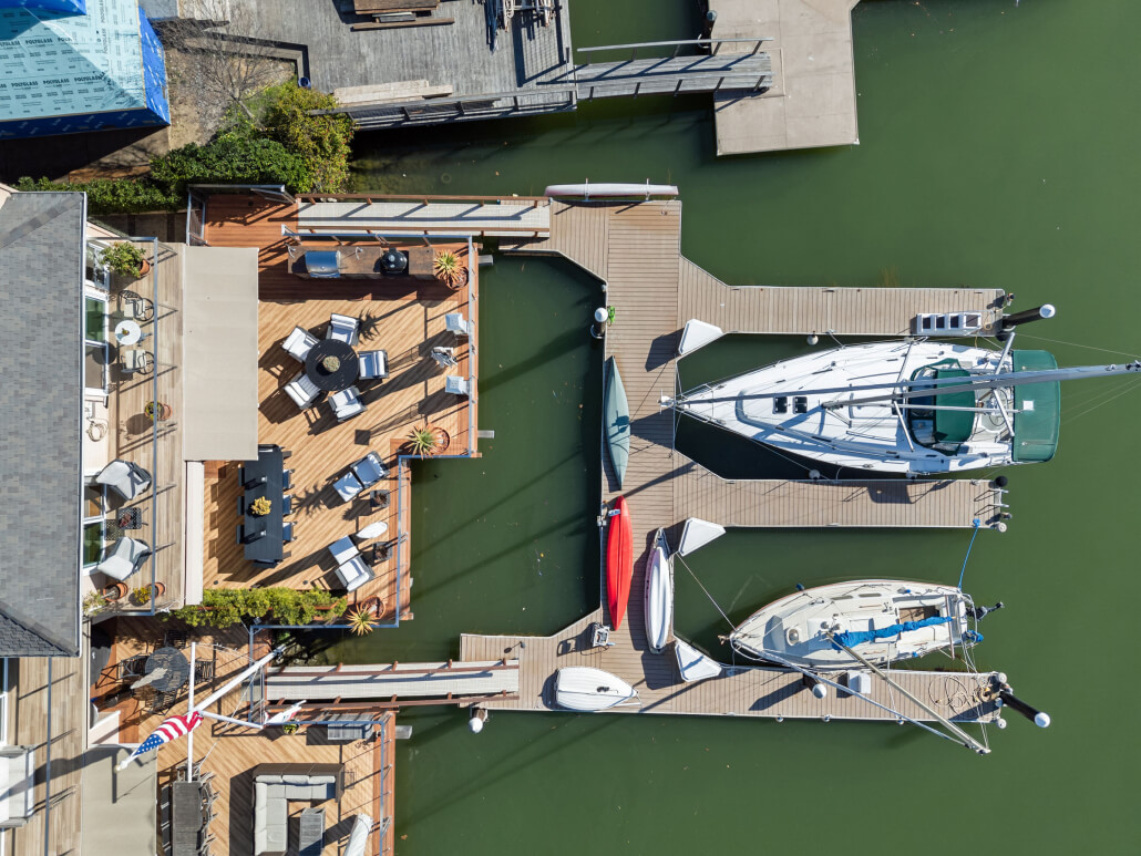 26 Mooring Road, San Rafael, California – Located along the tranquil waters of San Rafael Creek, 26 Mooring Road offers a rare opportunity to enjoy true waterfront living with direct private dock access, generous outdoor entertaining spaces, and refined interiors.