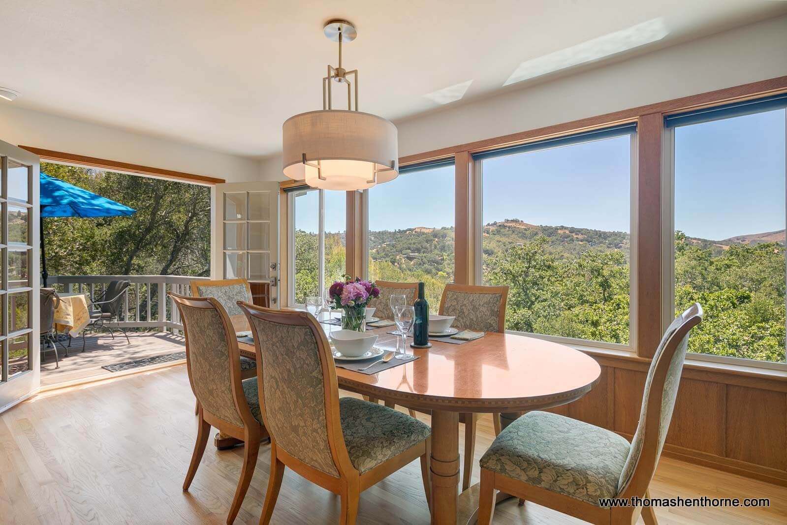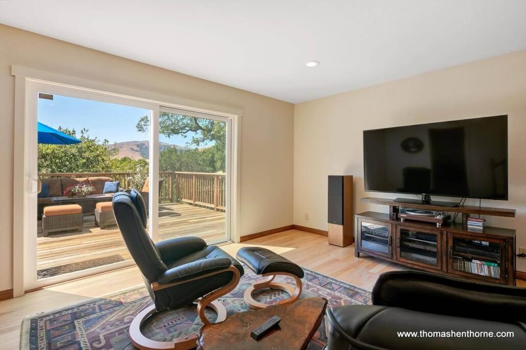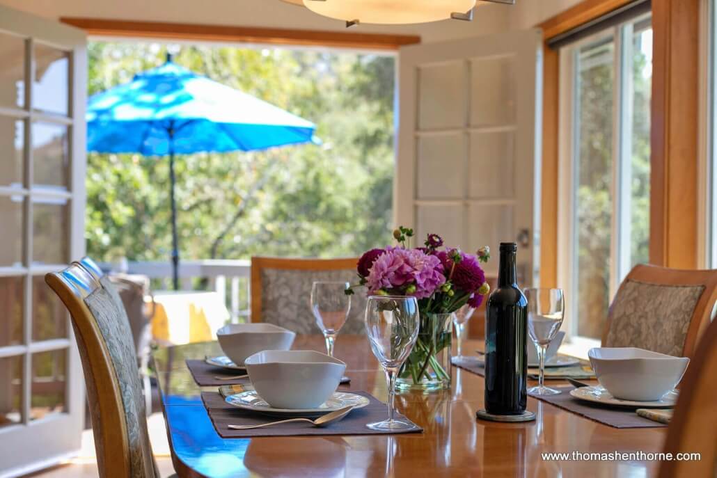There are gorgeous views of the Marin hills from almost every room of this lovely home, as well as from the pool area and the dining deck just off the kitchen and dining room. Many a grape harvest dinner followed by a spectacular sunset has been enjoyed in this home.