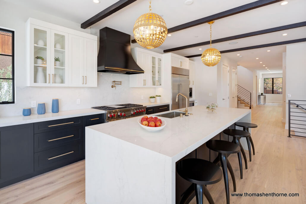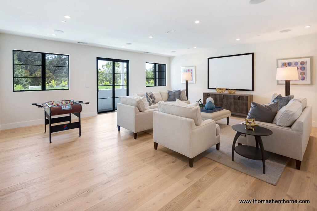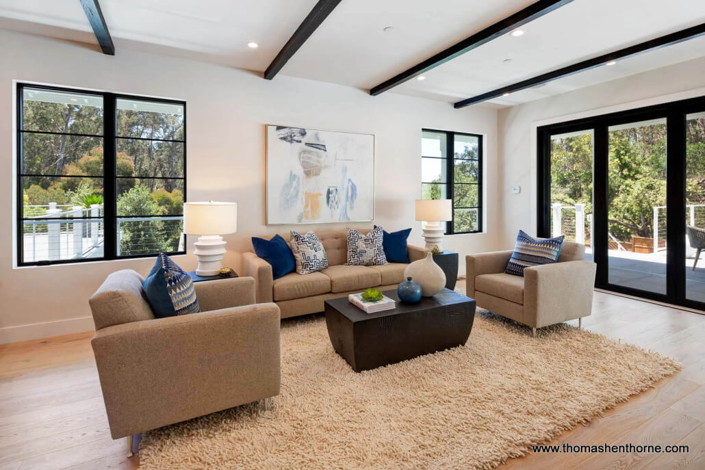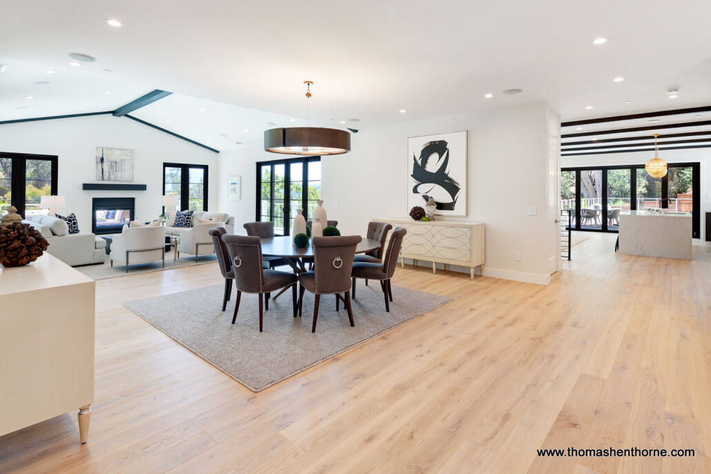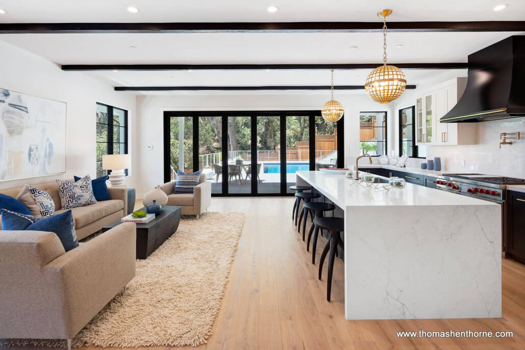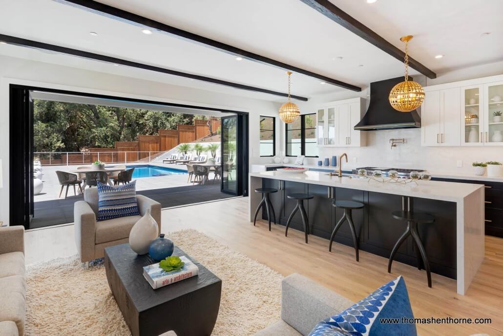 Entering the home’s main level, visitors are greeted with soaring ceilings and spacious, light-filled rooms that flow effortlessly to multiple outdoor living spaces. The quality of the home and the attention to detail is immediately apparent upon entering the home