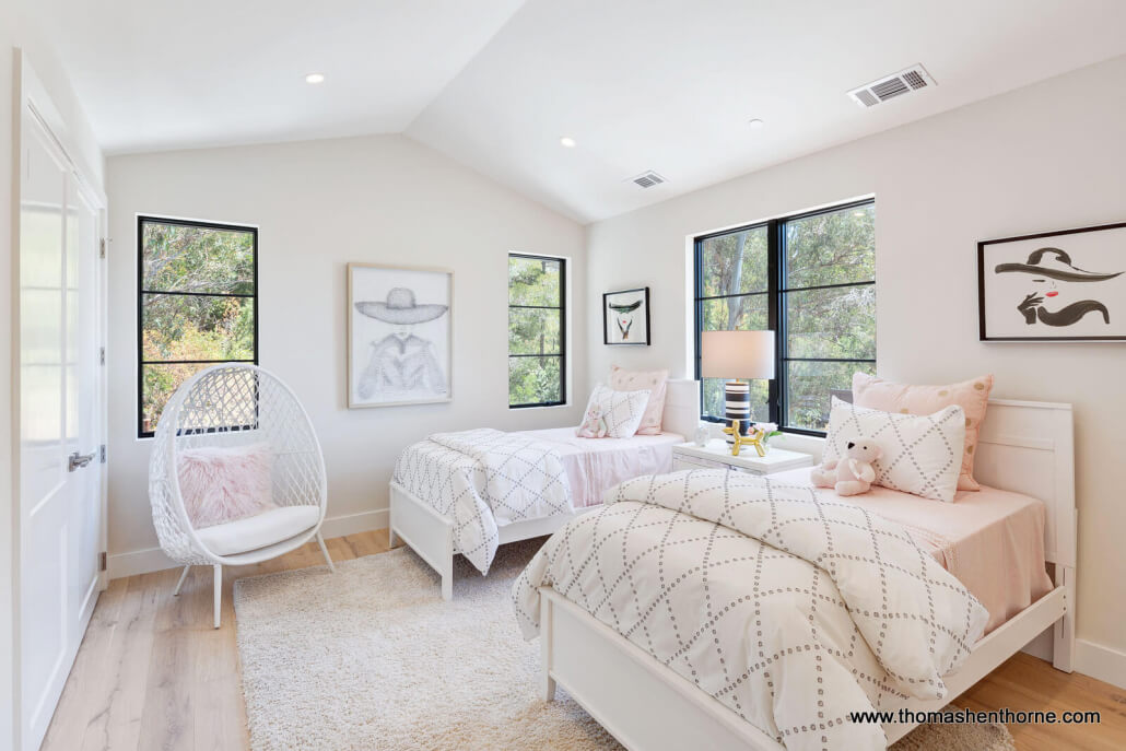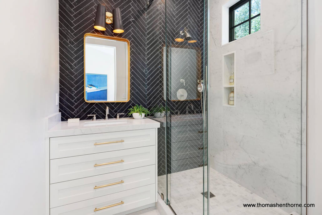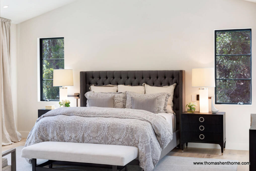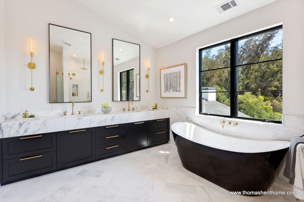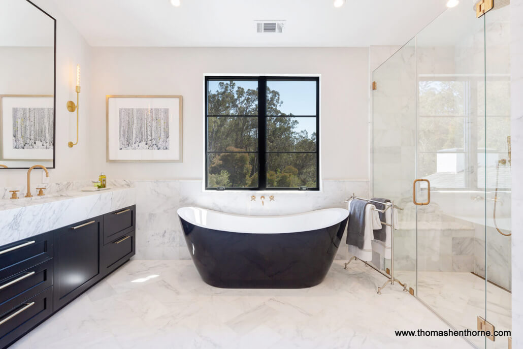 Three bedrooms are located on the upper level and all feature custom en-suite bathrooms. The master suite retreat overlooks the swimming pool and boasts panoramic Mt. Tam views, high ceilings and an enormous walk-in closet. The spa-like master bath is worthy of a 6-Star boutique resort featuring a custom black soaking tub, Carrara marble floors and walls, floating vanity with dual sinks and an integrated Carrara marble counter, large walk-in shower with glass surround and a frosted glass enclosed toilet room.