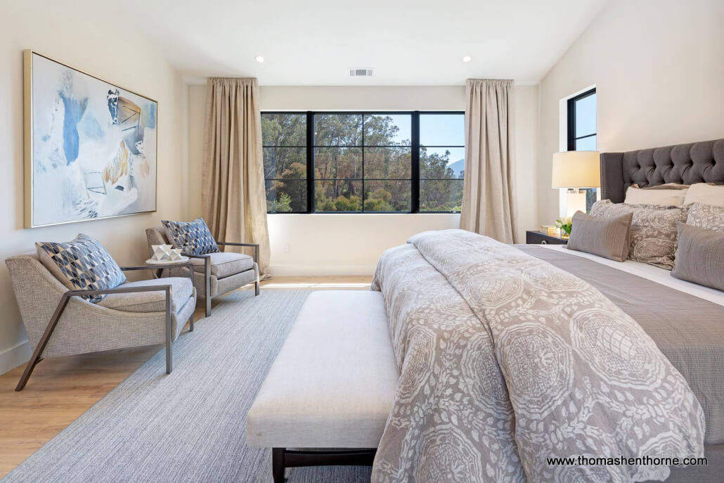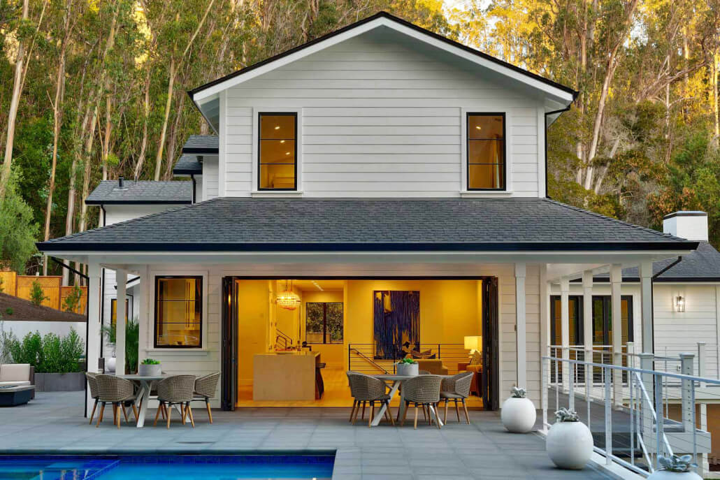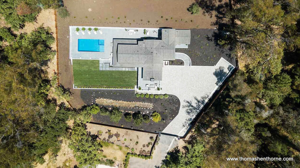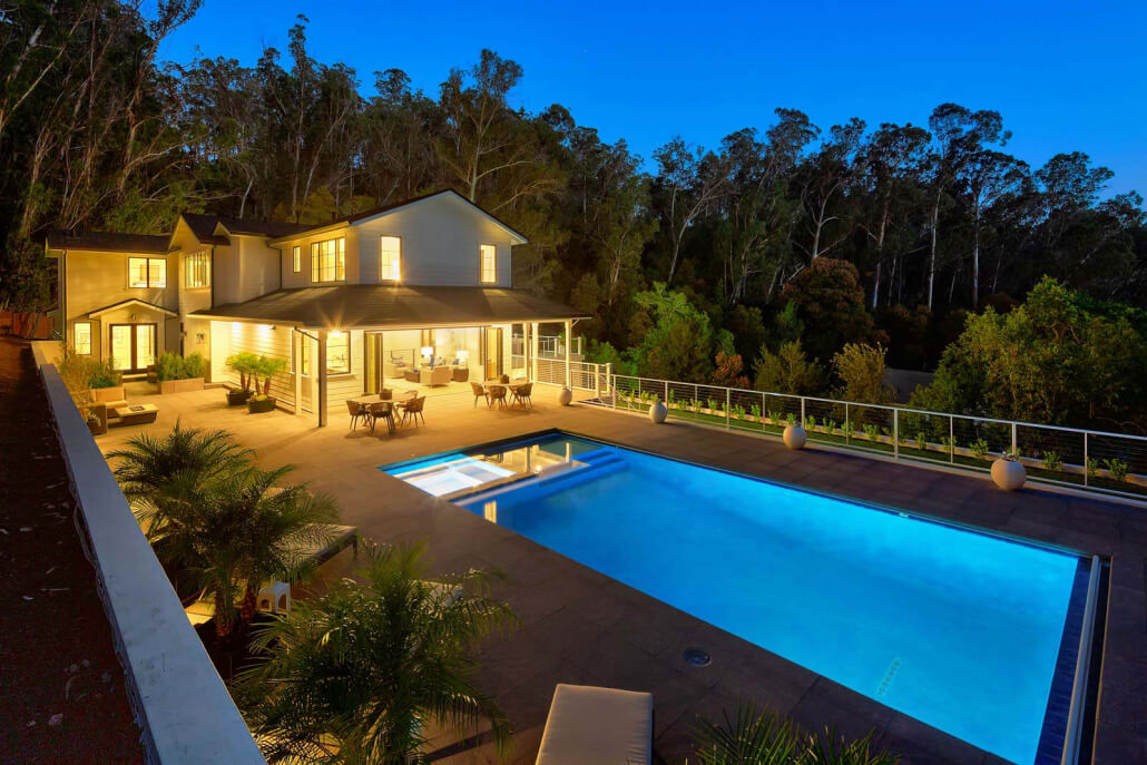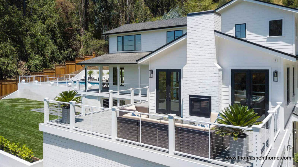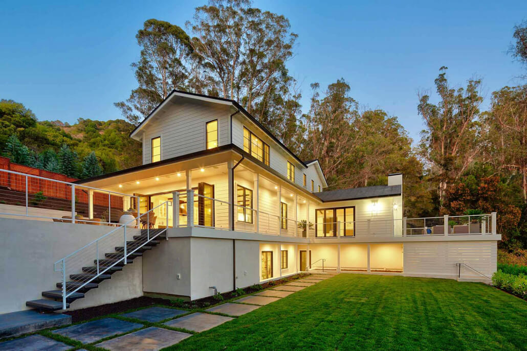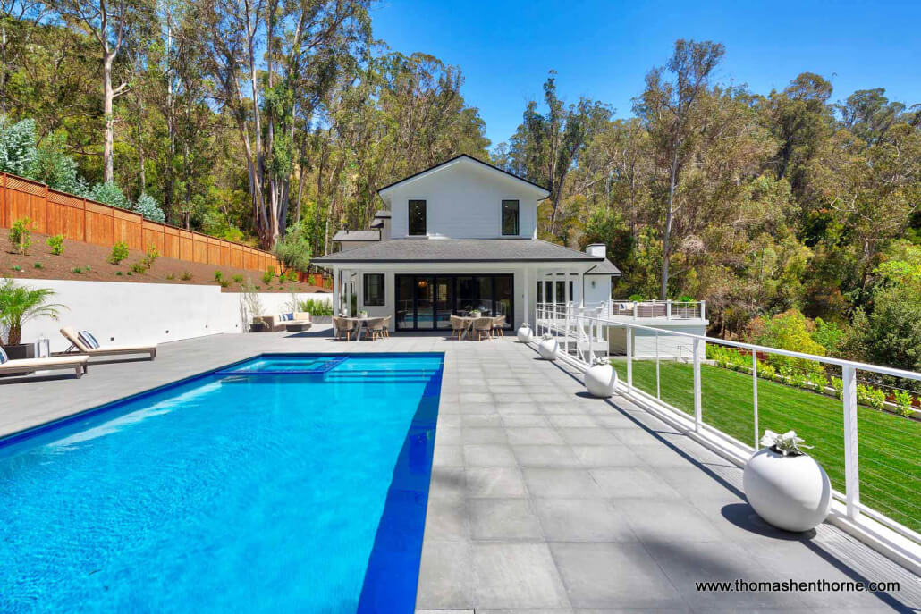 61 Gold Hill Grade, San Rafael — Situated behind custom gates at the end of Gold Hill Grade in the exclusive Dominican neighborhood of San Rafael, this newly-constructed 4 BR+office / 6.5 BA modern farmhouse masterpiece has it all – an open-concept floor plan, sparkling blue swimming pool off the main living level, expansive level lawn, panoramic Mt. Tam views, exquisite privacy and premium design and finishes throughout. No detail has been overlooked in making this estate a home that will be enjoyed for generations to come.