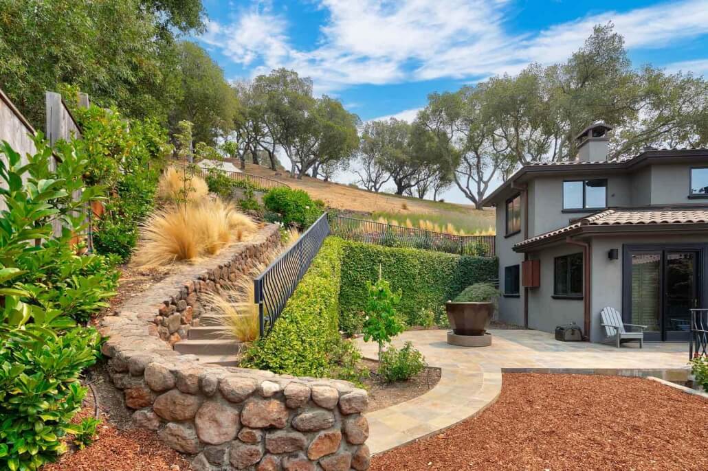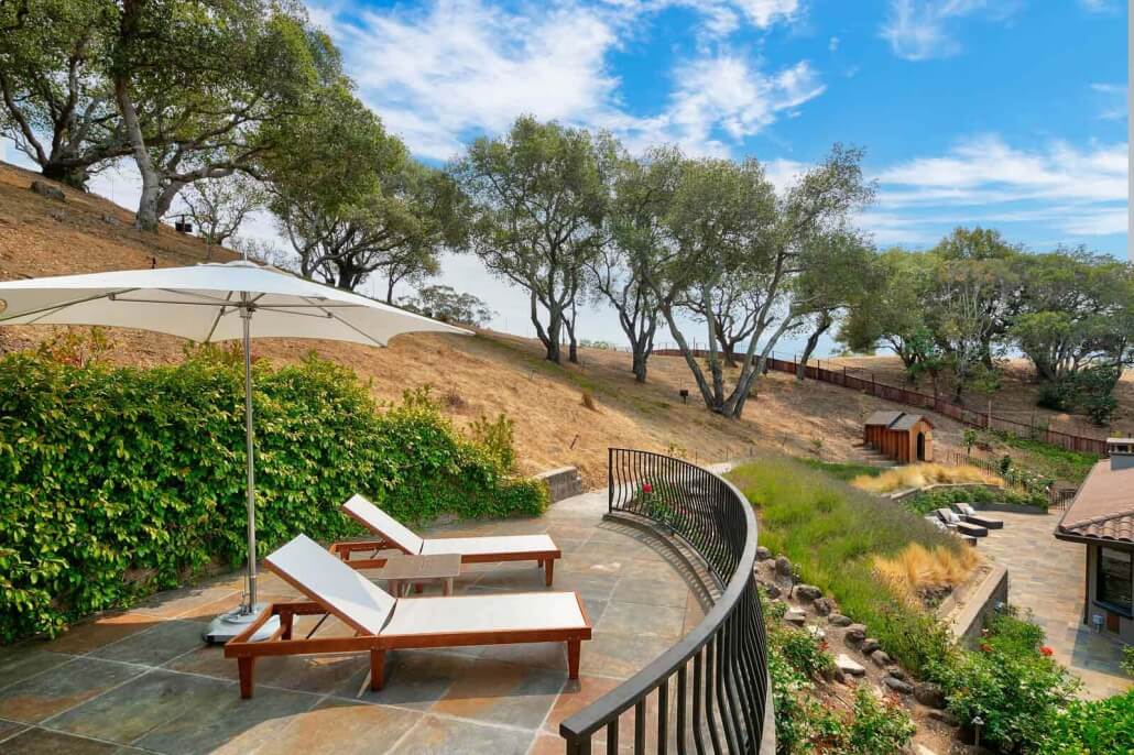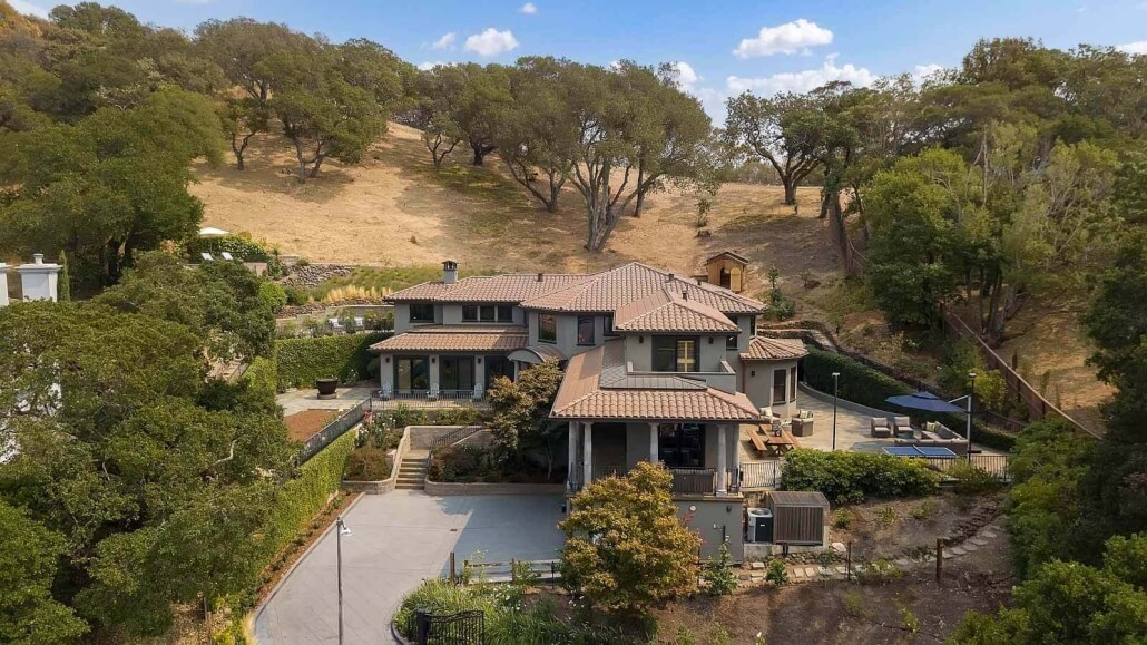 70 Miwok Drive, Novato — Situated at the end of a quiet cul-de-sac in one of Novato’s most exclusive neighborhoods, 70 Miwok Drive is a stunning custom-built 5 BR / 4.5 gated estate situated on 2.26 acres adjacent to open space. Offering over 5,200 square feet of living space, this beautiful home features an open-concept floor plan and premium designer finishes throughout including custom cabinetry, stone countertops, high-end stainless appliances, hardwood floors and wood shutters.
