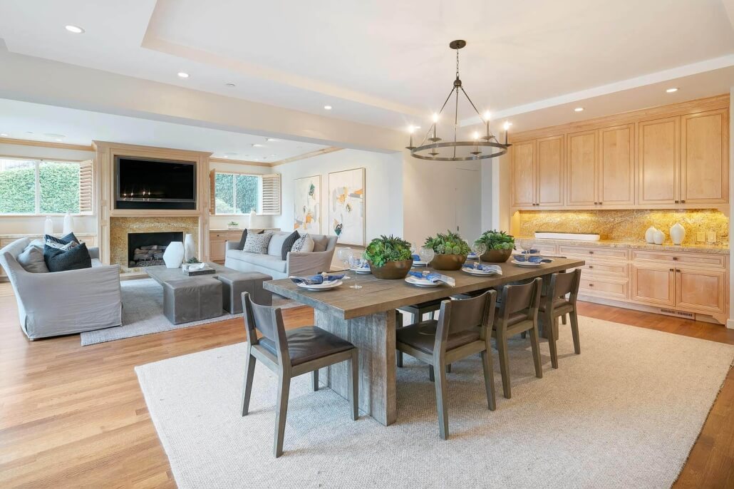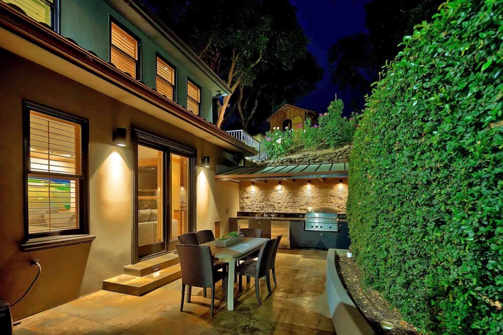 The estate offers true California living with effortless indoor/outdoor flow, wraparound stone patios and multiple outdoor living spaces including an outdoor kitchen, two expansive entertaining patios and a level play area. The home is surrounded by beautiful gardens boasting roses, lavender, Japanese maples and fruit trees.