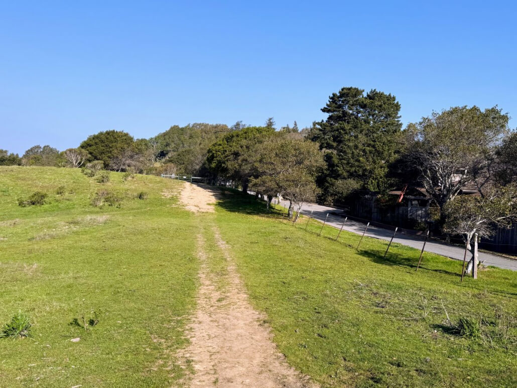 - Into the Oaks: You will enter a shady area where the trail winds between mature oaks. You’ll see houses on the right (past the fence) and a “Welcome to Alto Bowl Open Space Preserve” sign. Meadowcrest Drive is visible on your right. Meadowcrest Drive is on your right.