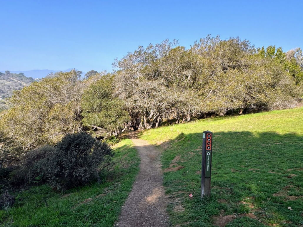 Into the Oaks: You will enter a shady area where the trail winds between mature oaks. You’ll see houses on the right (past the fence) and a “Welcome to Alto Bowl Open Space Preserve” sign. Meadowcrest Drive is visible on your right. Meadowcrest Drive is on your right