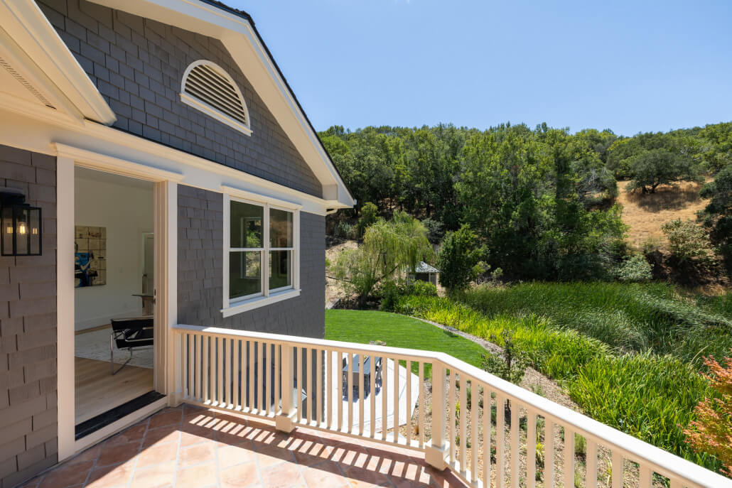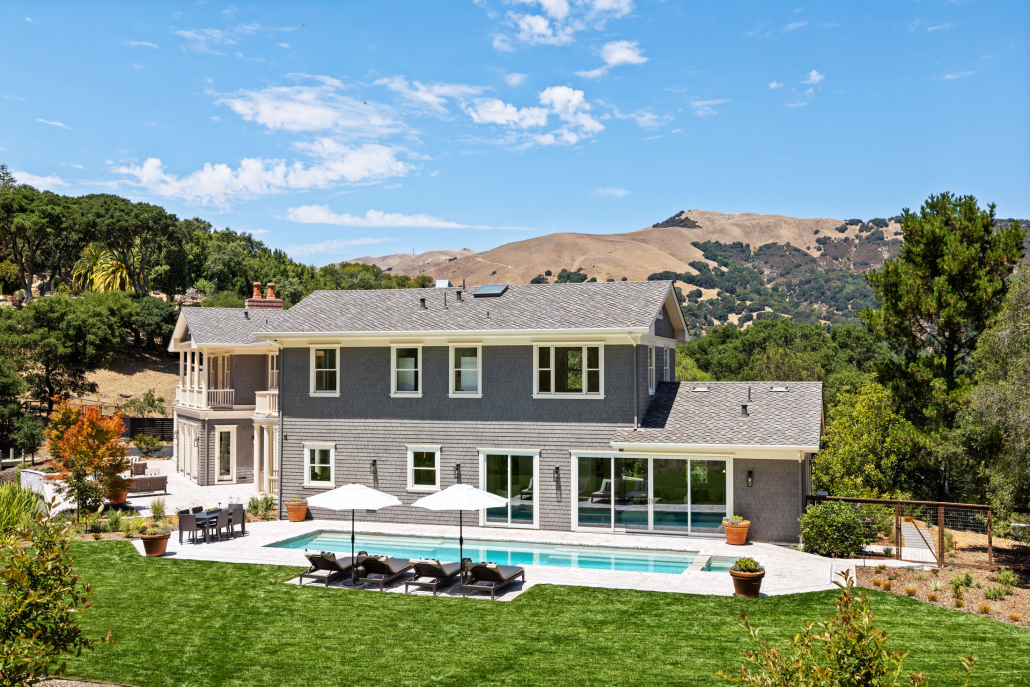 Originally built in 1990 by esteemed local builder Kelly Pacific Construction with the highest-quality materials, the home has been thoughtfully reimagined to meet today’s luxury standards. The painted-shingle façade, grand port-cochere entry, and gracious scale evoke classic Hamptons architecture rarely seen in Marin. Inside, light-filled rooms flow seamlessly to expansive terraces through French doors and glass sliders, blending timeless elegance with modern indoor-outdoor living.