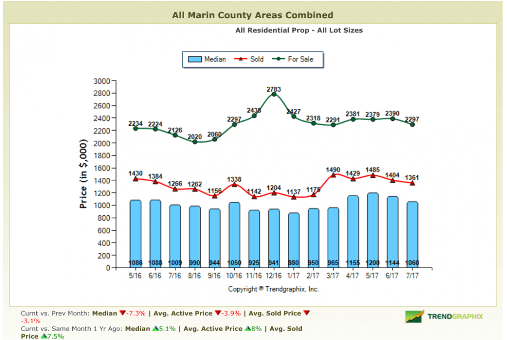 Welcome to my Marin County Real Estate Market Report for August 2017! Summer slowdown? Hardly! While the Marin County real estate market has slowed from its fever pitch in the spring, there is still plenty of activity out there. In fact, it was my busiest July ever. Of course I could not do this without you, and I truly appreciate your referrals and support. Based on this Marin IJ Real Estate Market article that I was happy to be quoted in, it is looks like I’m not the only one experiencing a busy summer season.
