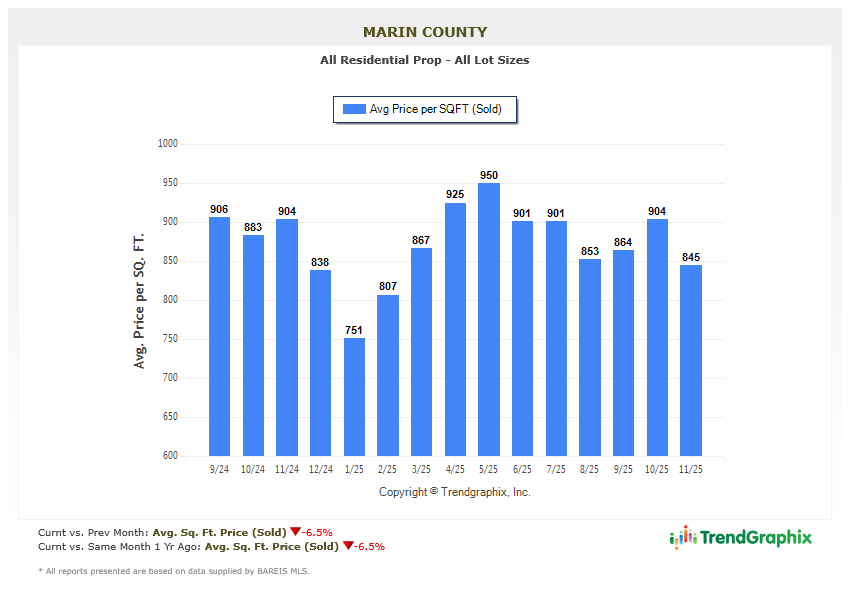 Average sold price per square foot: $845 (down 6.5% YoY)