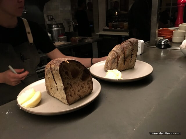 They are famous for their “pain au levain,” a moist fluffy flavorful bread they bake on-site. It is served with house cultured butter, central coast creamery goat gouda and candied walnuts. It was a wonderful start to our evening there.